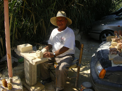 Tous les matins, salines Infersa, devant l’île de Mozia, et déballe sa marchandise: d’étonnantes petites sculptures qu’il taille dans la pierre et le tuf et qu’il expose sur le toit et le capot de sa vieille Fiat; ou des balais et des brosses qu’il confectionne avec des feuilles de palmiers nains (la « giummara »), selon une technique transmise par son père et, avant lui, son grand-père.