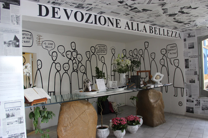 Su l’albergo d’arte l’Atelier sul Mare, si è già scritto tanto. Io stesso ho pubblicato un articolo su questo sito, uscito sulla rivista Ulysse e su Le Monde.fr. Devozione alla bellezza, si può leggere in grosse lettere appena si entra nella hall dell’albergo. La bellezza, si, si trova in effetti nelle 23 camere d’arte, ognuna realizzata da un artista contemporaneo diverso. Ma questa sorprendente, incredibile, immensa creatività non deve far dimenticare la gentilezza. L’enorme gentilezza di tutta l’équipe di Antonio Presti, il geniale padrone dei luoghi.
