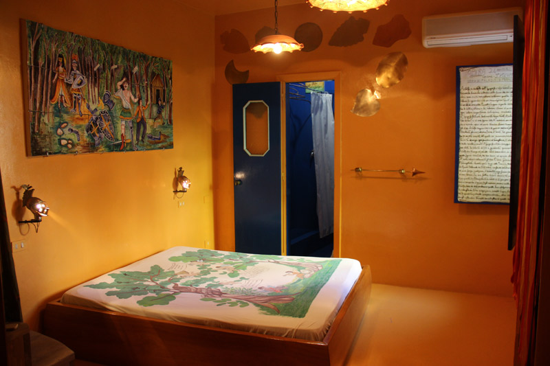 Dalla mia ultima visita, quattro nuove camere si sono aggiunte alla straordinaria collezione di questo albergo d’arte. Questa volta, ho scelto la Stanza dell’Opra, la camera concepita da Mimmo Cuticchio, il famoso marionettista dell’Opera dei pupi, quel teatro di marionette tradizionale di Sicilia, iscritto al patrimonio culturale e immateriale dell’umanità dell’Unesco dal 2008. Dormire in un’opera d’arte, immersa nell’universo colorito dei pupi siciliani… Per forza furono sogni d’oro!